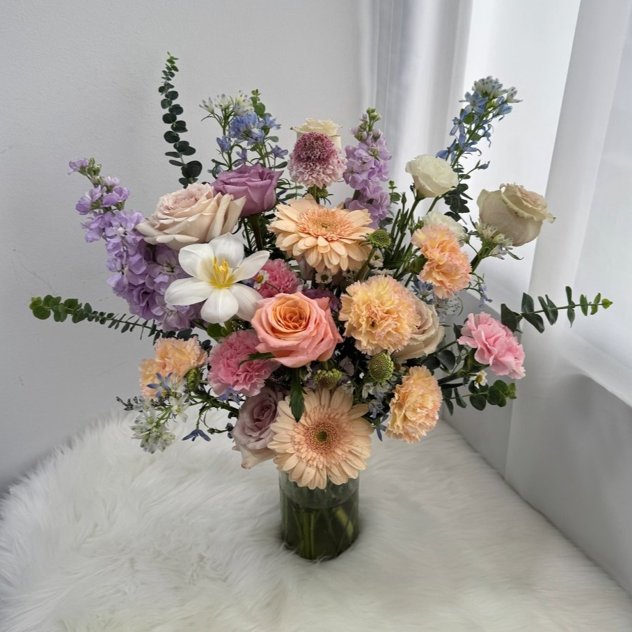 Flowers are natural and often seasonal. In the event of the unavailability of any filler (accompanying flower or greens), we reserve the right to replace them with an equivalent alternative (in physical appearance) of the same aesthetic quantity, and of the same or higher monetary value.