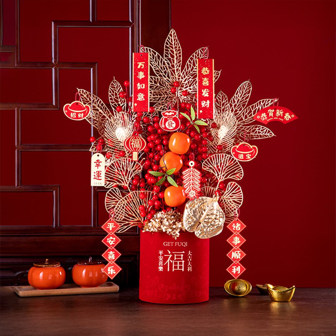 Blissful Fortune – Premium CNY Artificial Flower Arrangement