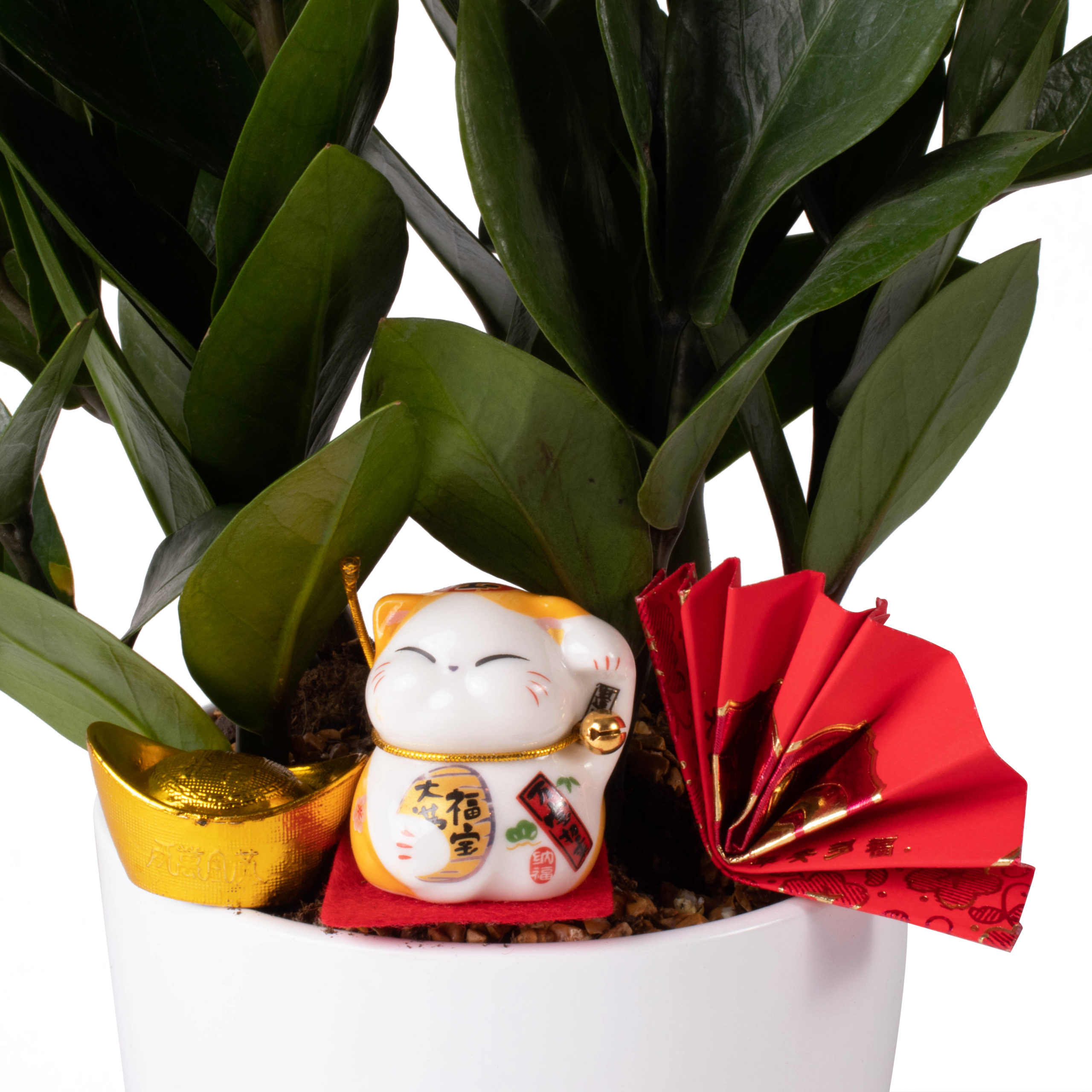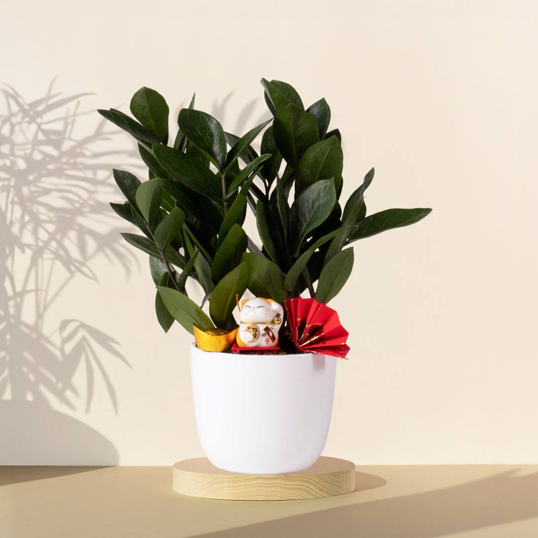 Not a fan of elaborate flower arrangements? Prefer something minimalist for Chinese New Year that won’t overwhelm the colour palette at home? Take home this super fun Lucky Cat arrangement. A low-maintenance plant paired with an adorable Fortune Cat mascot in a minimalist white pot – what’s there not to love?