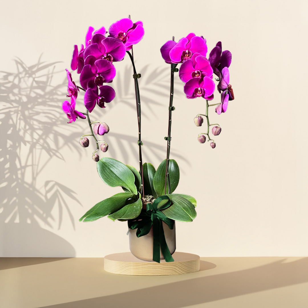 This potted plant features the Purple Orchid Phalaenopsis.