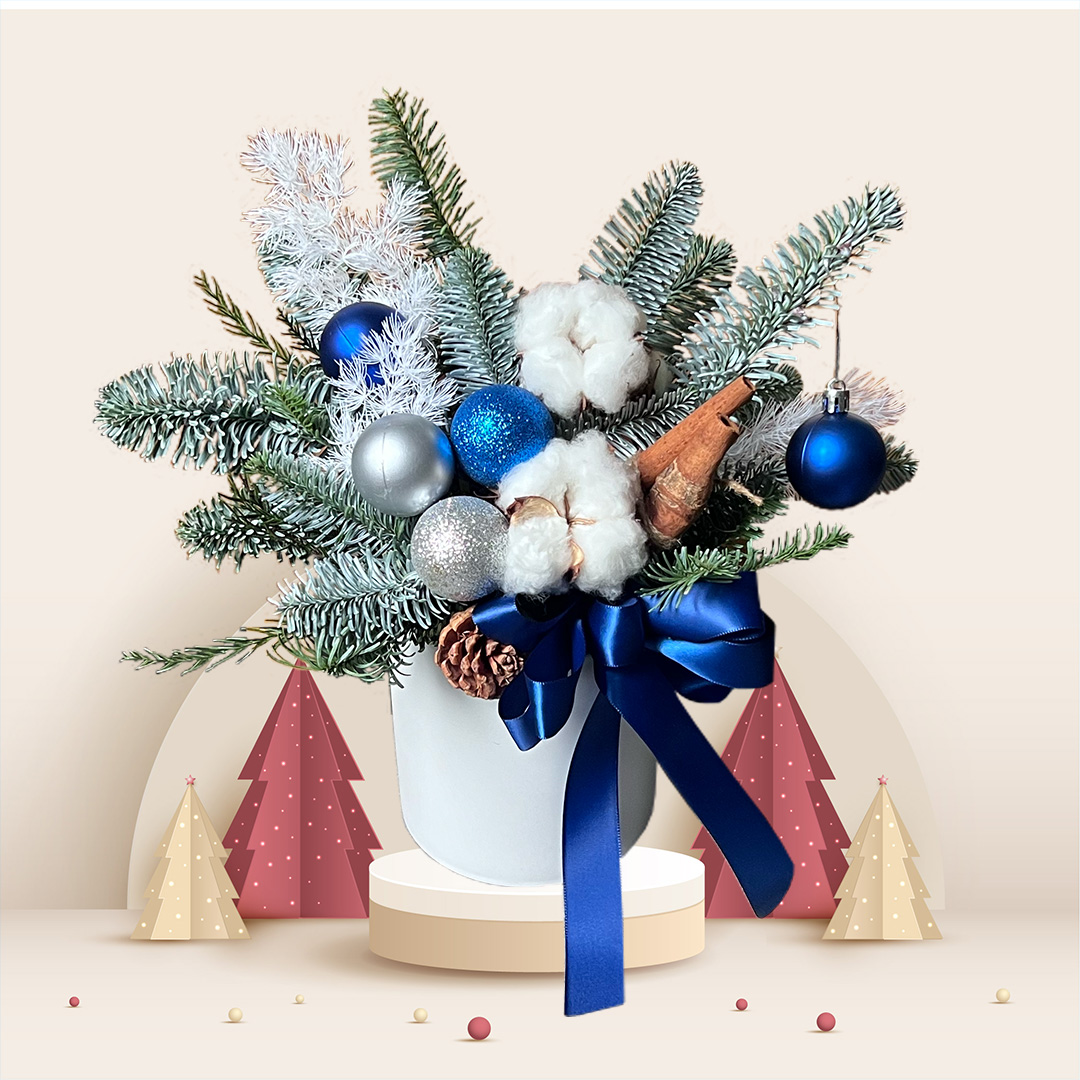 Discover our exceptional Snowy Grace Christmas Arrangement, ideal for Christmas celebration with its unique charm.