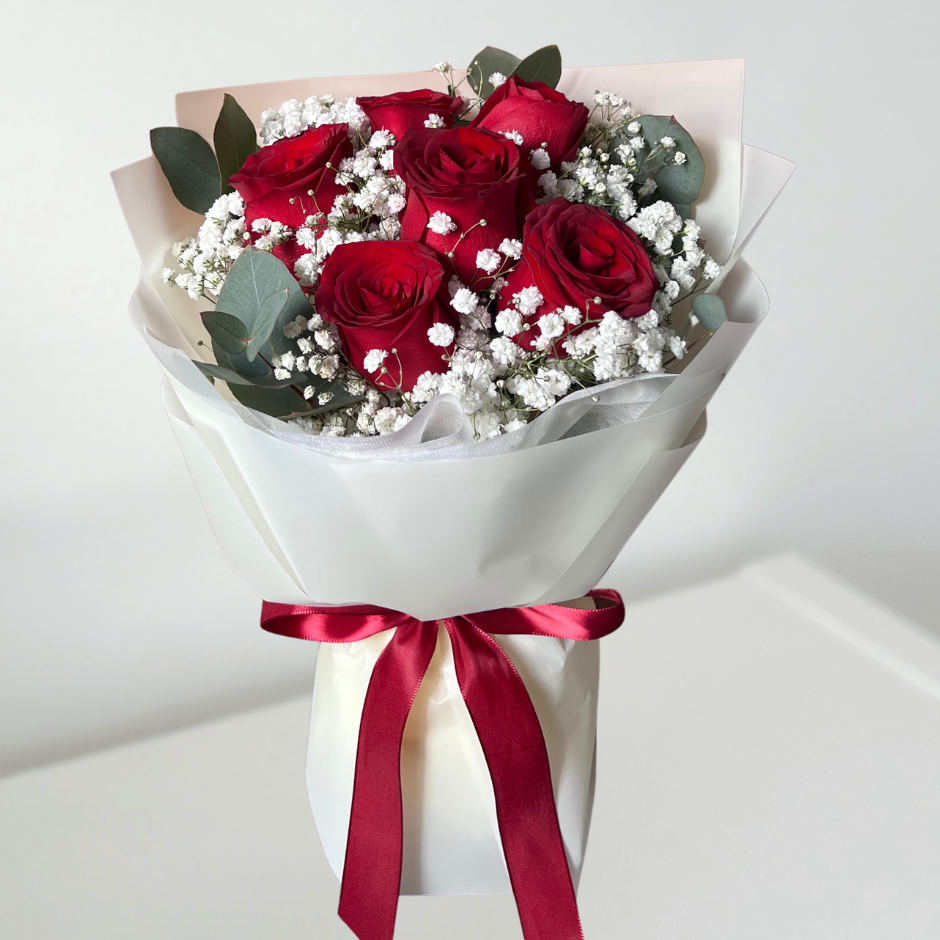 At the heart of every bouquet: roses, paired with 1–2 complimentary fillers such as seasonal greens and accent flowers for a fuller, more premium finish.